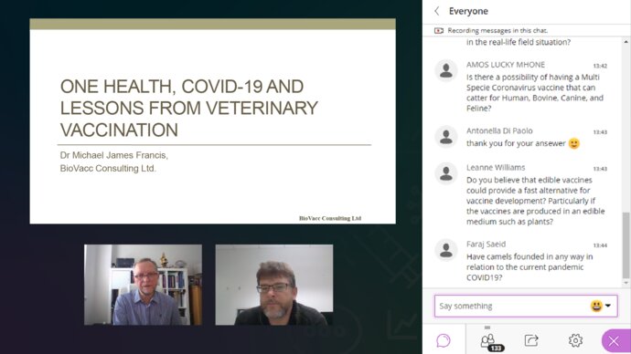 Seven speakers from five countries took part this week in a virtual symposium on vaccines for poultry, co-hosted by the IVVN and the GCRF One Health Poultry Hub. The event was chaired by the One Health Poultry Hub's director, Professor Fiona Tomley, and Professor Hualan Chen from the Harbin Veterinary Research Institute in China, and was the second in a series of virtual symposia organised by the IVVN.